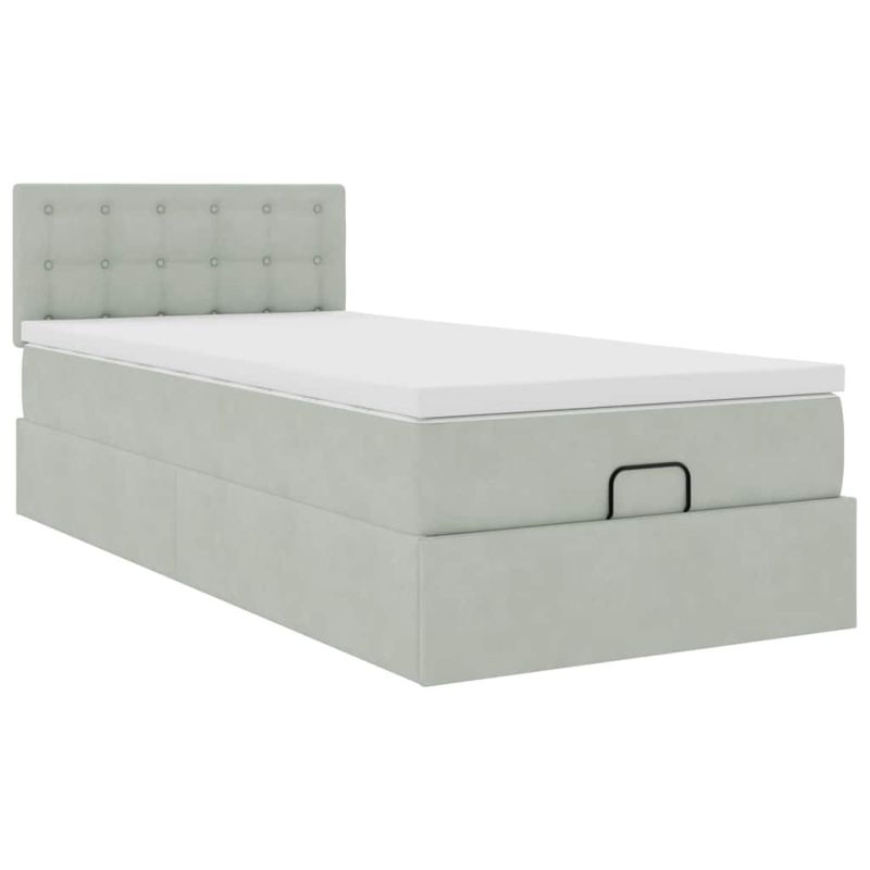 Османска легло с матрак, светлосиво, 90x200 см, кадифе