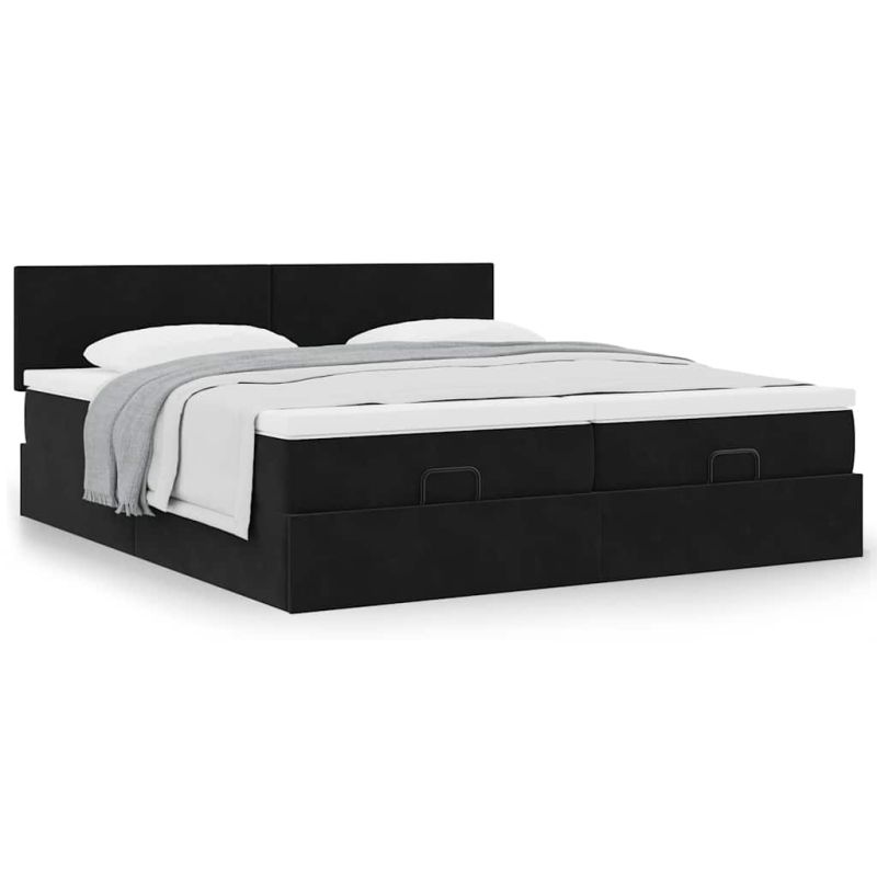 Османска легло с матраци, черно, 200x200 см, кадифе