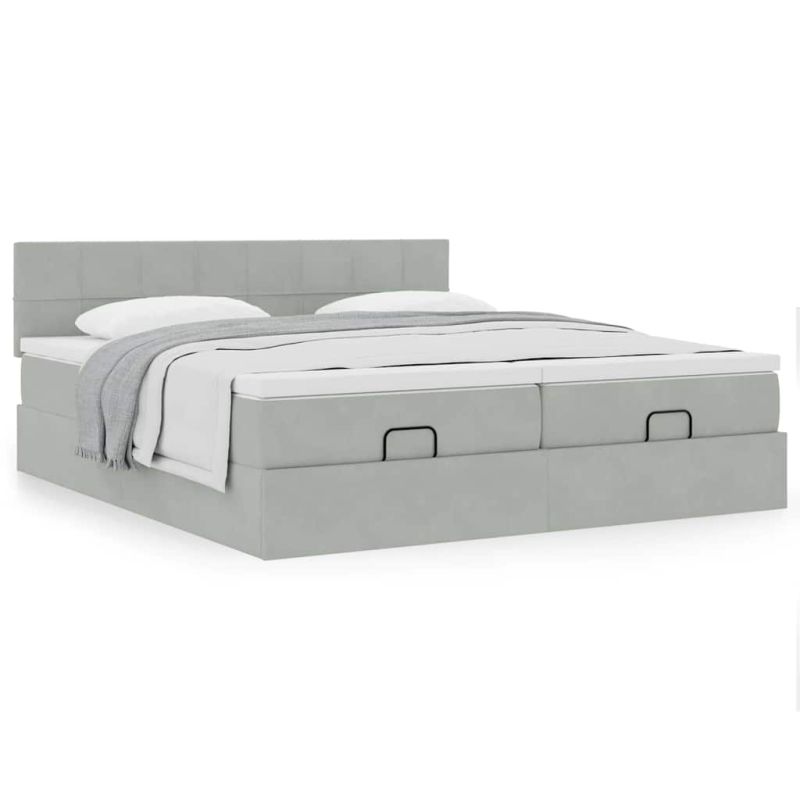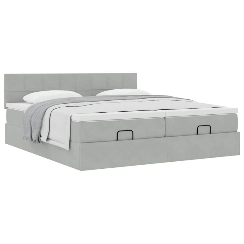Османска легло с матраци, светлосиво, 180x200 см, кадифе