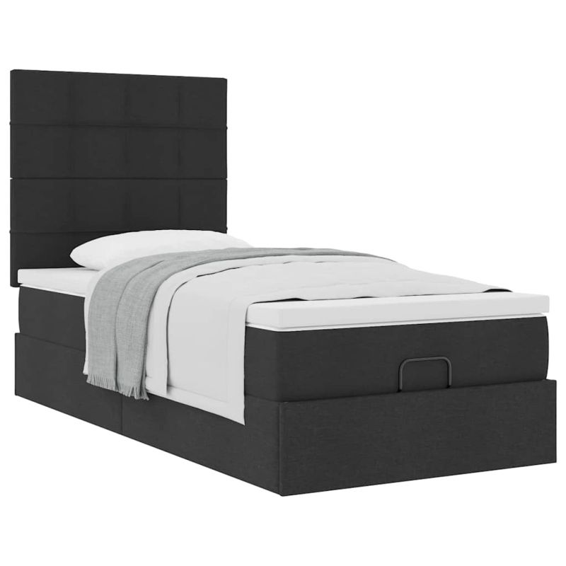 Османска легло с матрак, черно, 100x200 см, плат
