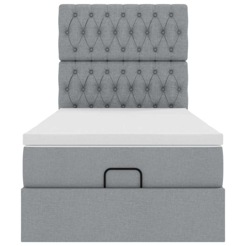 Османска легло с матрак, светлосиво, 90x190 см, плат