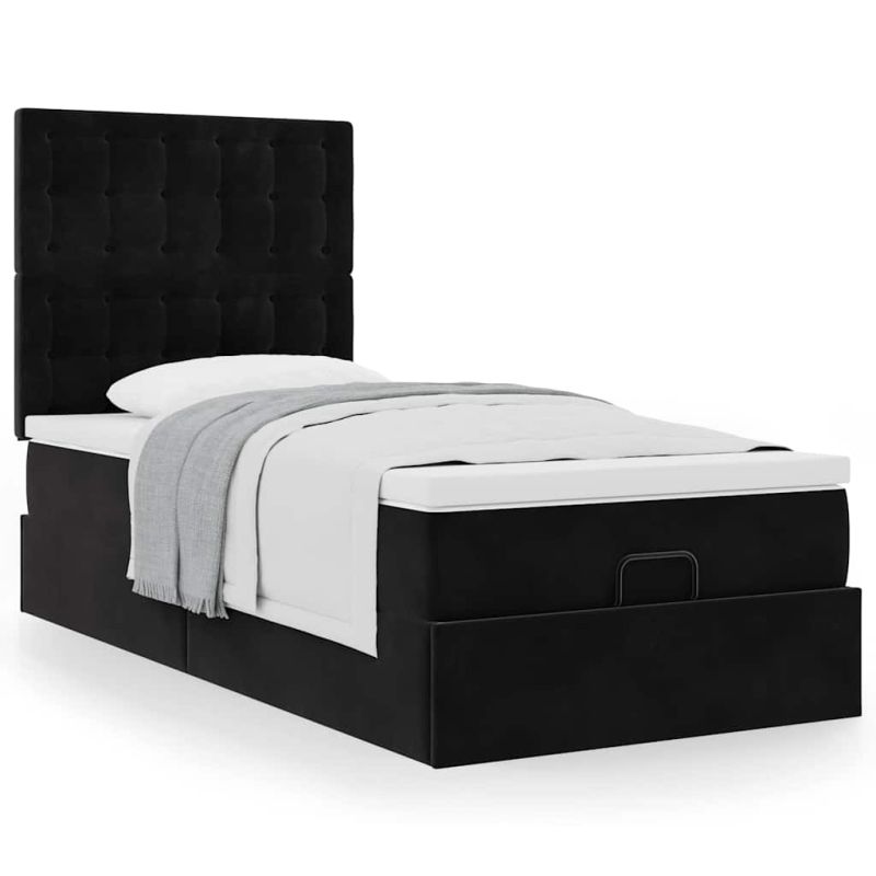 Османска легло с матраци, черно, 100x200 см, кадифе