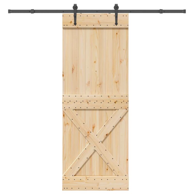Плъзгаща врата с монтажни части, 85x210 см, борово дърво масив