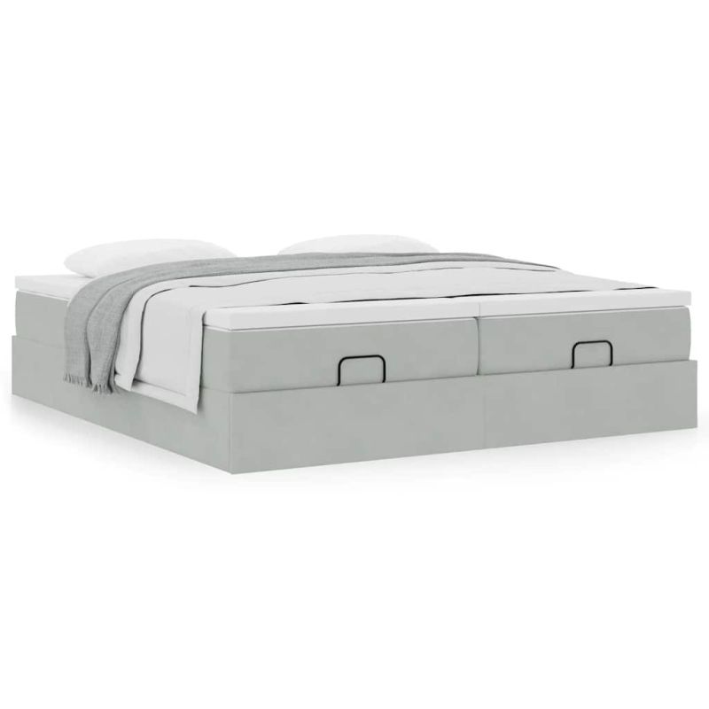 Османска легло с матраци, светлосиво, 160x200 см, кадифе