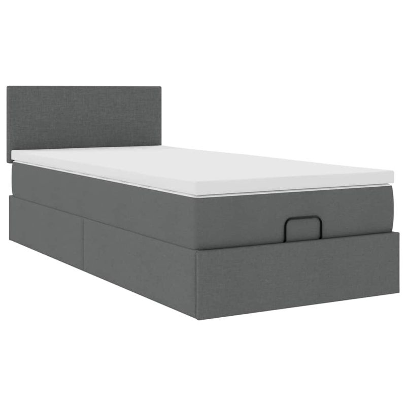 Османска легло с матрак, тъмносиво, 80x200 см, плат