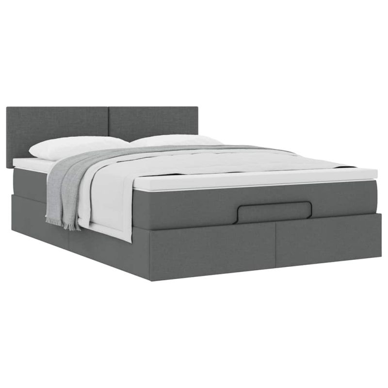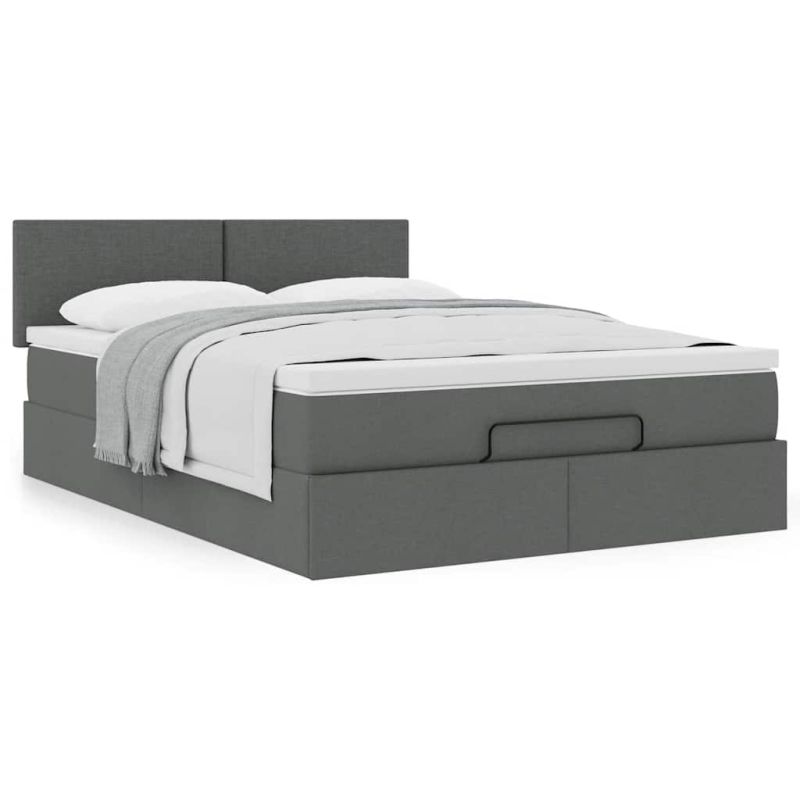Османско легло с матрак Тъмно сиво 140x190 cm Тъкан