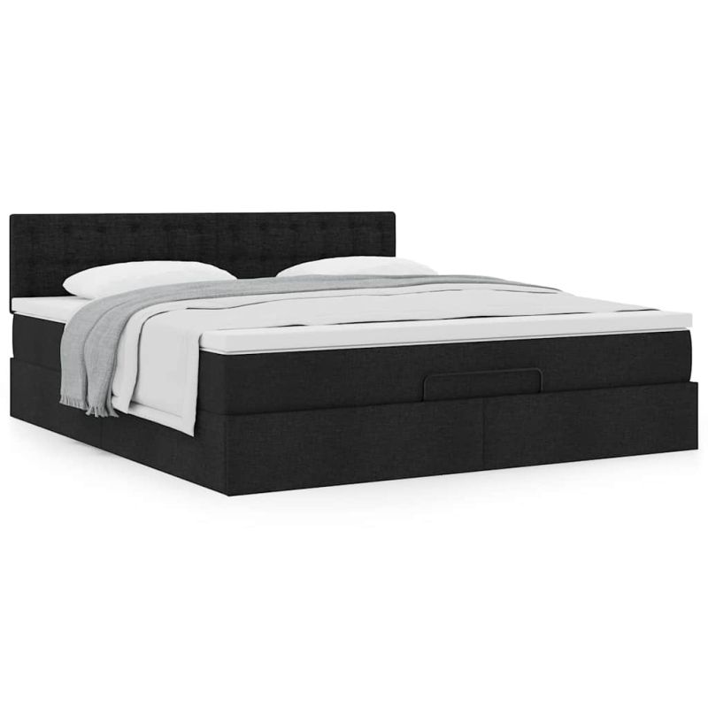 Османска легло с матрак, черно, 160x200 см, плат