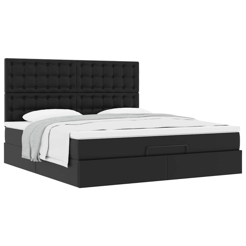 Османска легло с матрак, черно, 160x200 см, изкуствена кожа