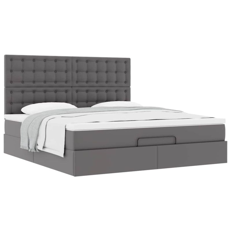 Османска легло с матрак, сиво, 160x200 см, изкуствена кожа
