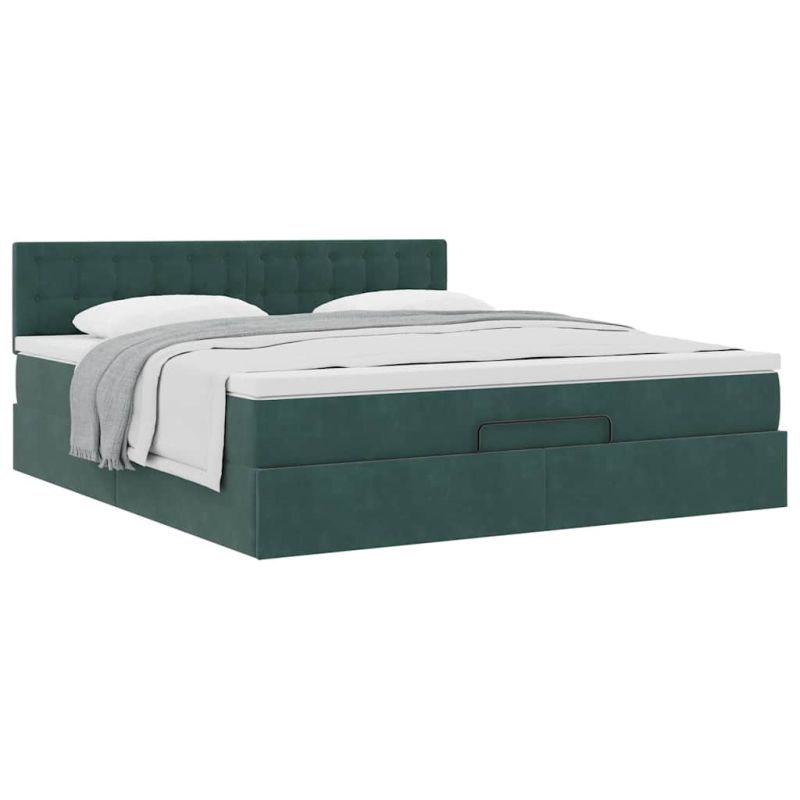 Османска легло с матрак, тъмнозелено, 180x200 см, кадифе