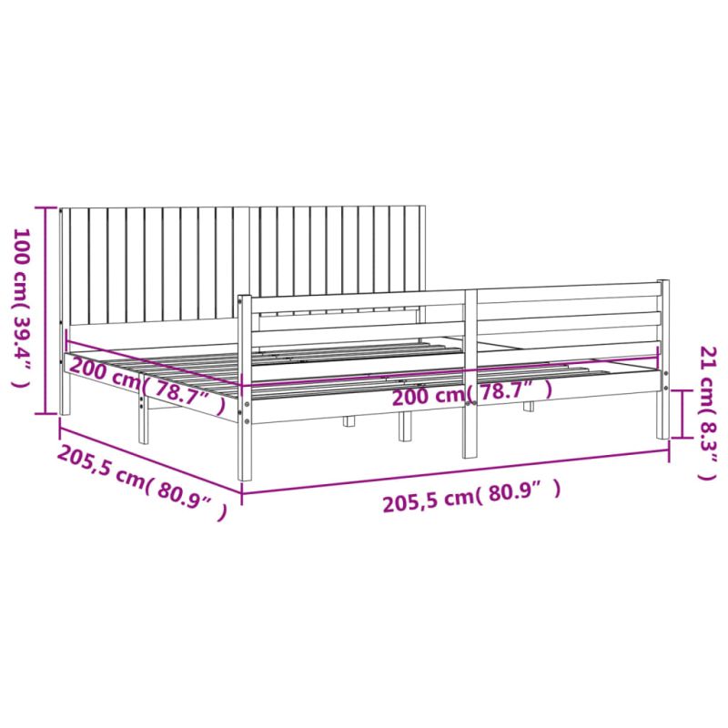 Рамка за легло с табла, 200x200 см, дърво масив