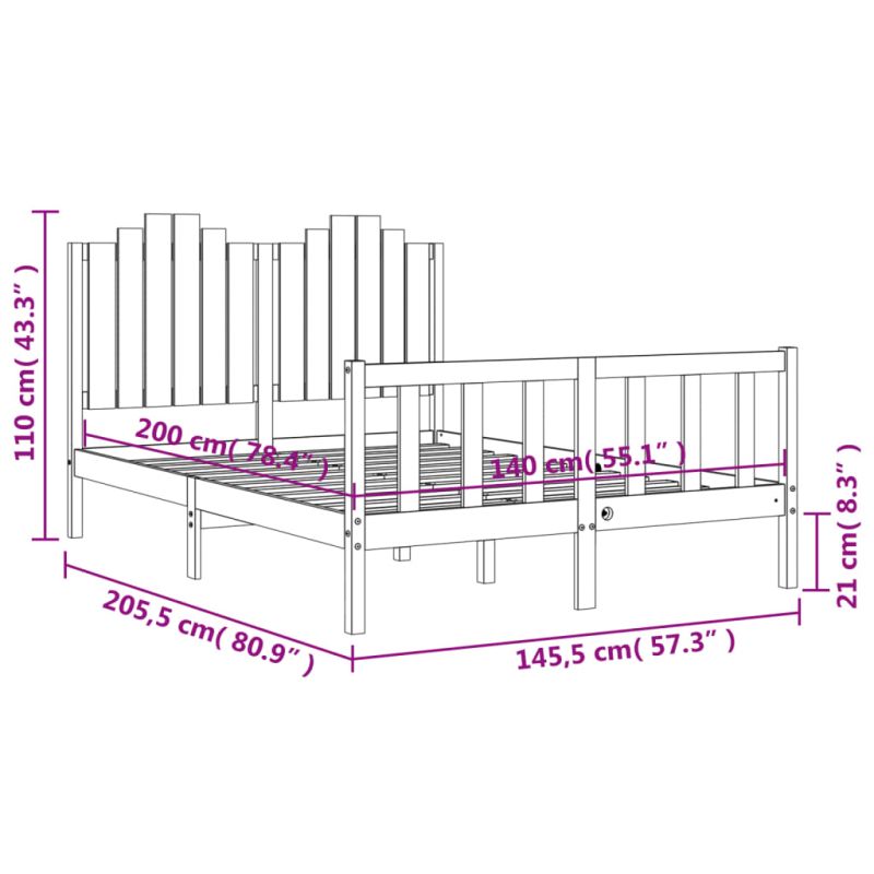 Рамка за легло без матрак, 140x200 см, масивна чамова дървесина