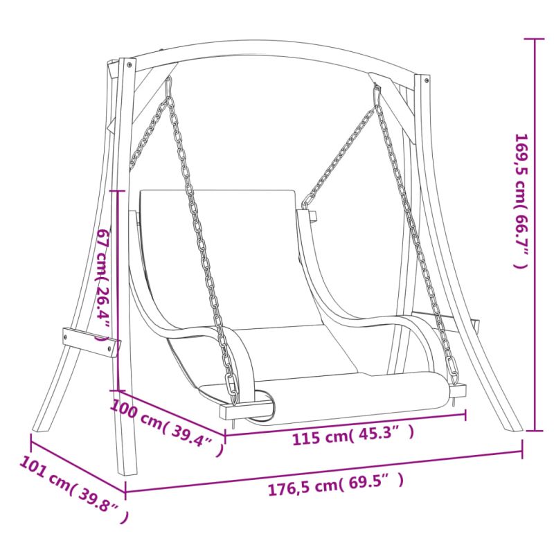 Стол-люлка с възглавница, масивно дърво смърч с финиш тик