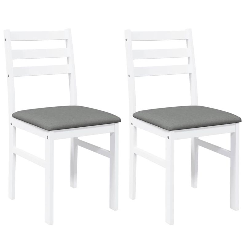Трапезни столове с възглавници 2 бр Бяла масивна дървесина гума