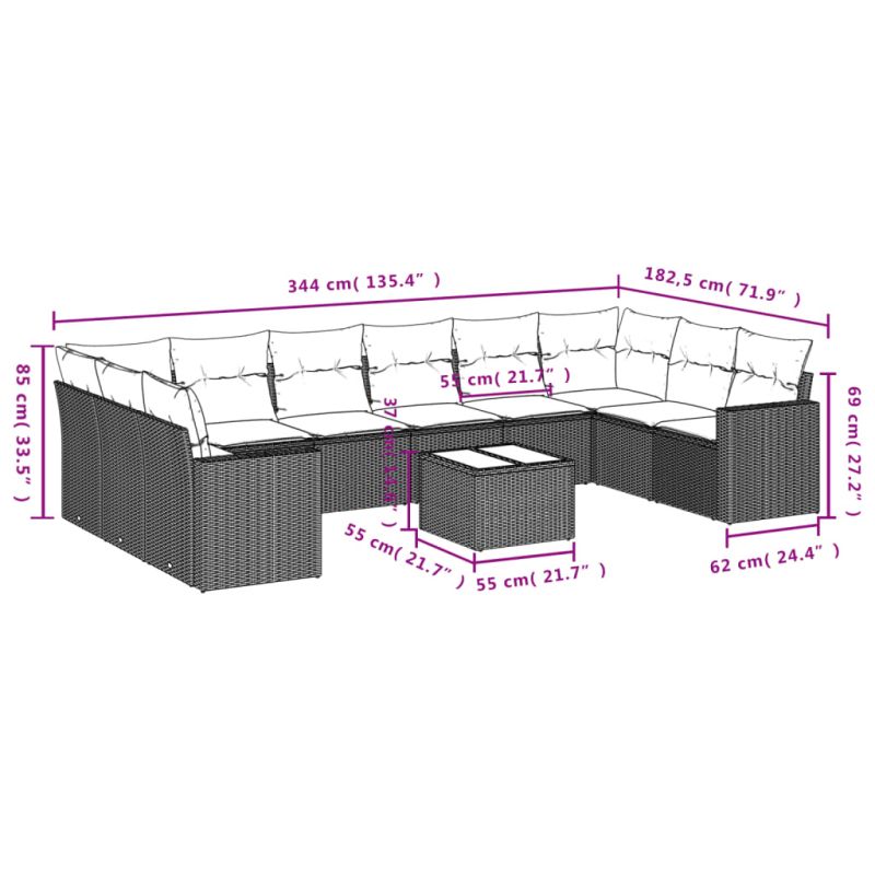 Градински комплект диван с възглавници 11 части черен полиратан