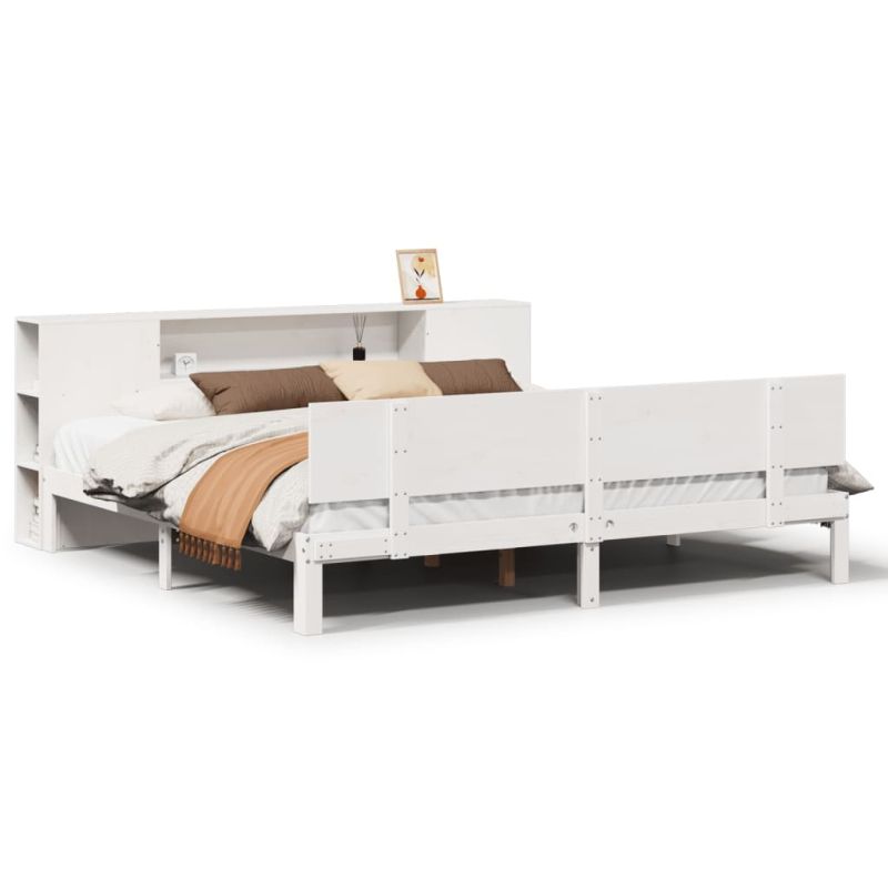 Легло с етажерка за книги, без матрак, 180x200 см, бор масив