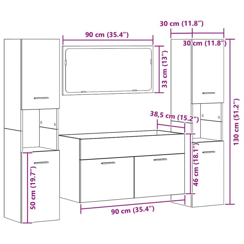 Комплект мебели за баня от 4 части старо дърво инженерно дърво