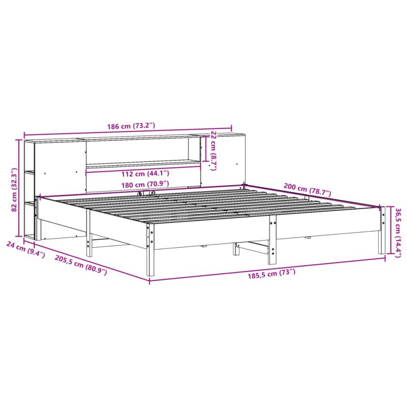 Легло с етажерка за книги, без матрак, 180x200 см, бор масив