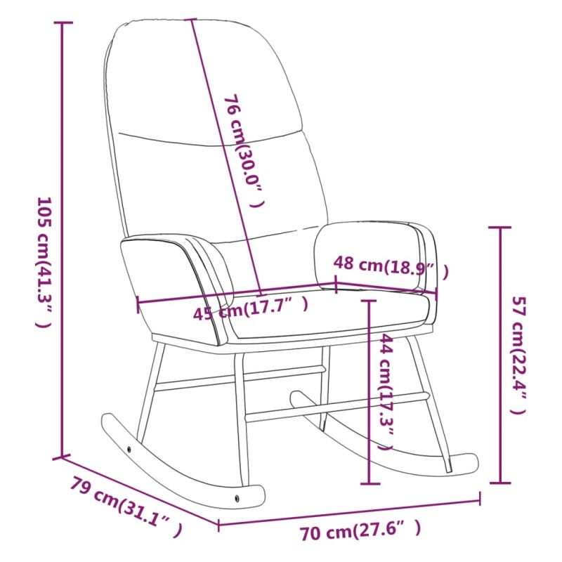 Седнете удобно и се отпуснете на този люлеещ се стол. Той е идеален избор за релаксация. Висококачествен материал: Тъканта се отличава с прост и изчистен вид, дишаща и издръжлива. Първокласната изкуствена кожа е изключително издръжлив материал. Устойчива е на петна, което я прави лесна за почистване с влажна кърпа.Допълнителен комфорт: Подлакътниците позволяват да поставите удобно ръцете си. Междувременно е идеален за релаксиране и повдигане на краката ви с включената табуретка. Можете да поставите табуретката навсякъде, според вашите предпочитания. Люлеещи се крака: Отпуснете се, като седнете удобно, докато се наслаждавате на успокояващо и нежно люлеене.