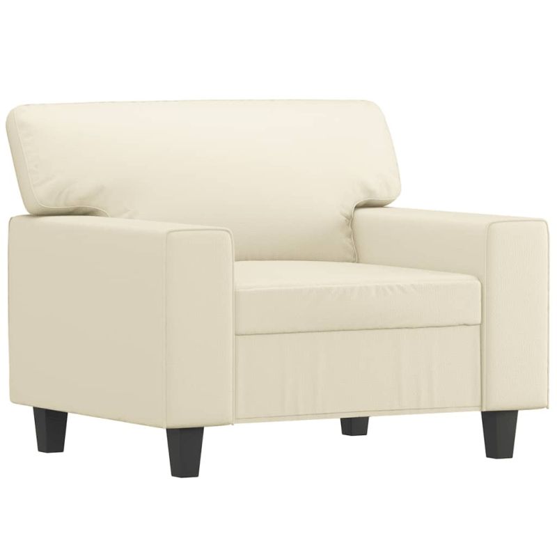 Кресло с табуретка, кремаво, 60 см, изкуствена кожа