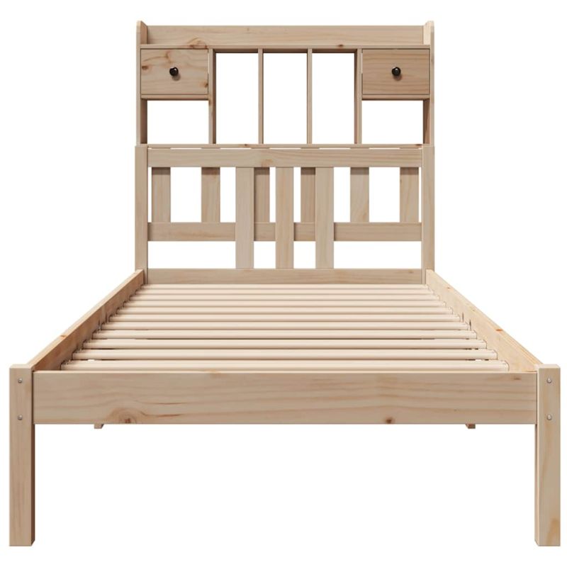 Легло с рафтове за книги, без матрак, 75x190 см, бор масив