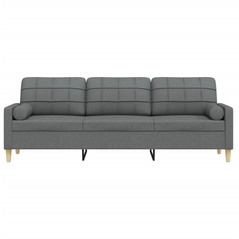 3-местен диван с декоративни възглавници тъмносив 210 см плат