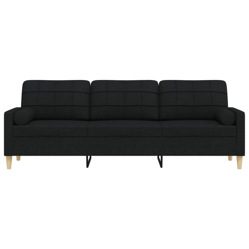 3-местен диван с декоративни възглавници черен 210 см плат