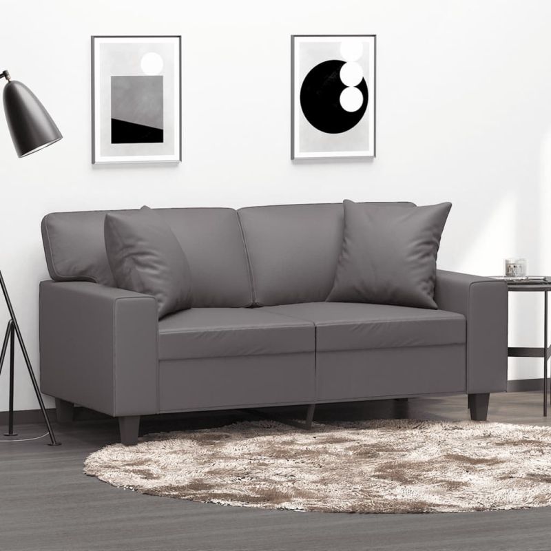 2-местен диван с декоративни възглавници сив 120 см еко кожа