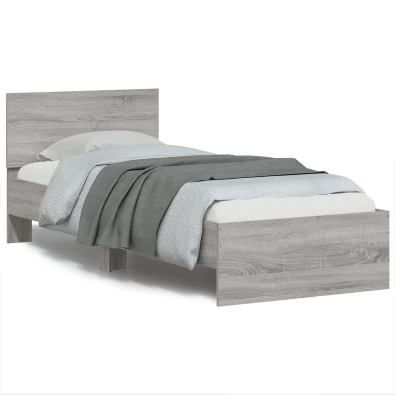 Рамка за легло с табла, сив сонома, 75x190 см, инженерно дърво