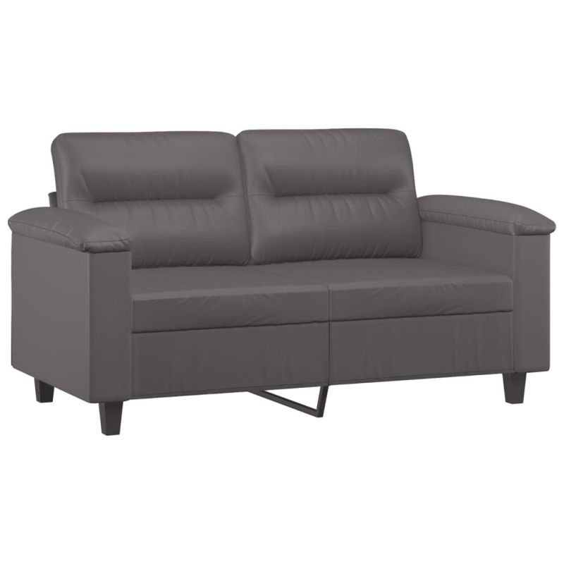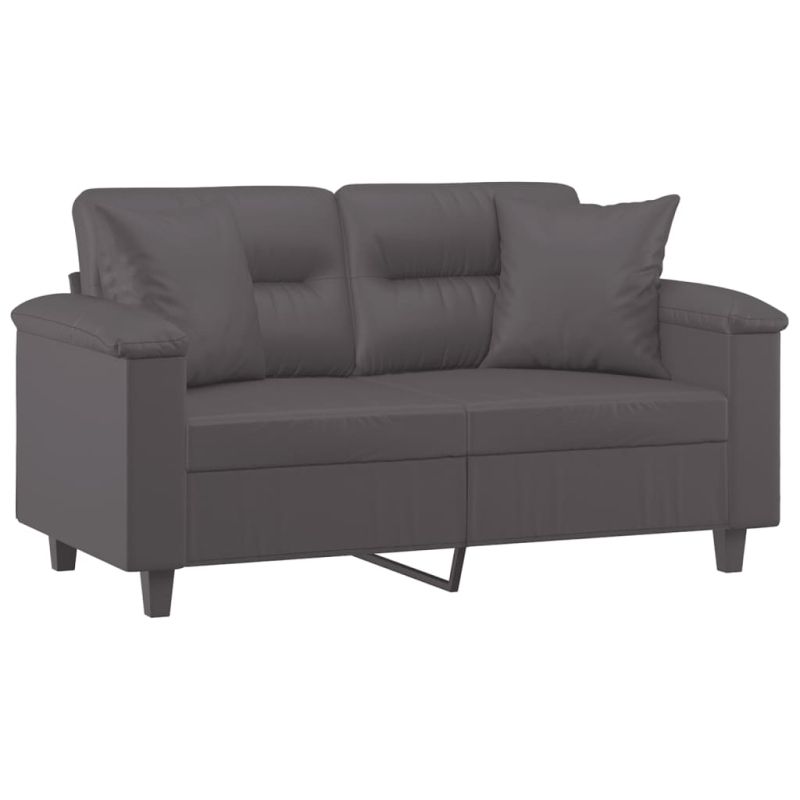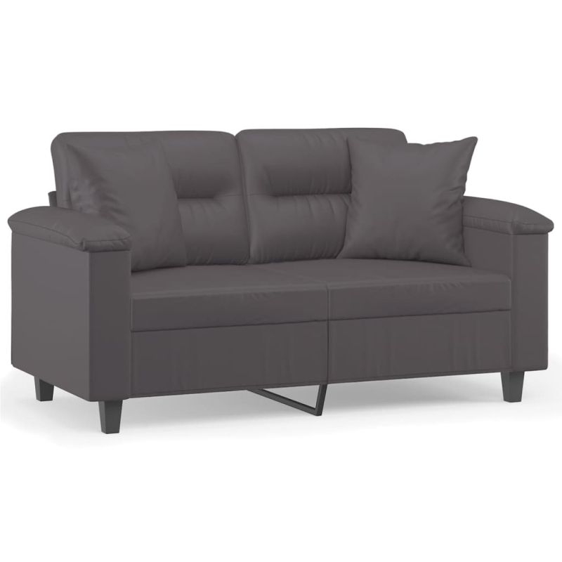2-местен диван с декоративни възглавници сив 120 см еко кожа