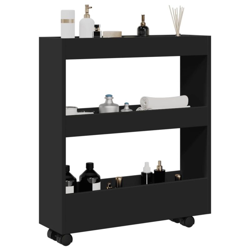 Тясна количка за съхранение, 3 нива, черна, инженерно дърво