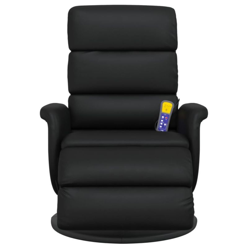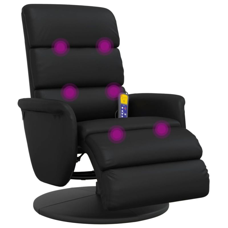Масажен реклайнер стол с опора за крака, черен, изкуствена кожа