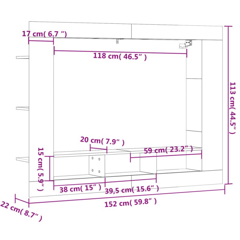 ТВ шкаф, сив сонома, 152x22x113 см, инженерно дърво