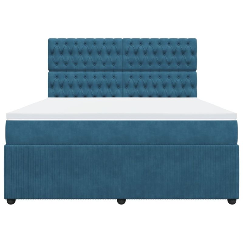 Боксспринг легло с матрак, тъмносиньо, 180x200 см, кадифе