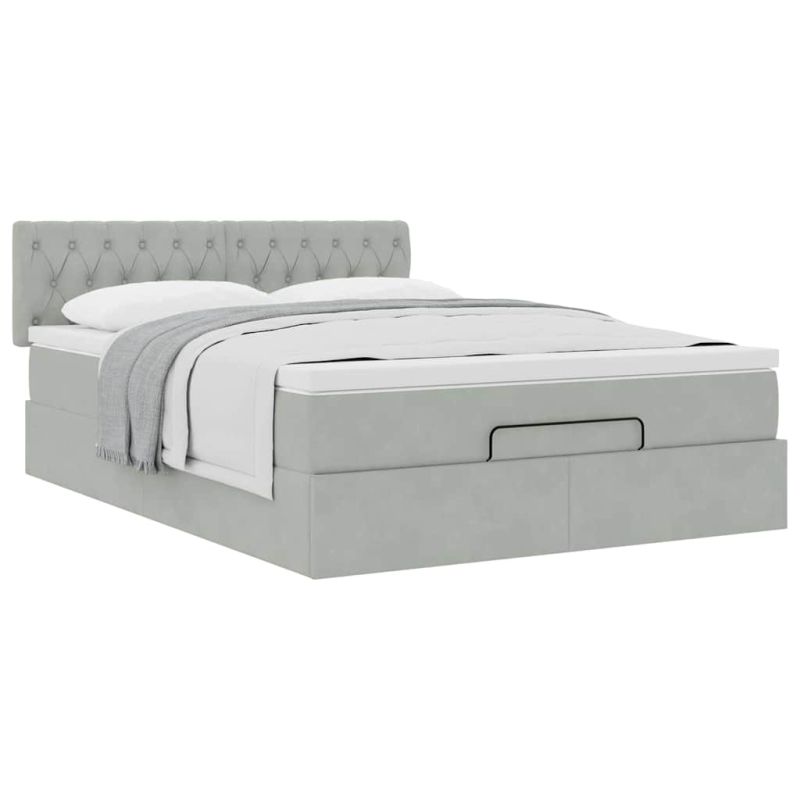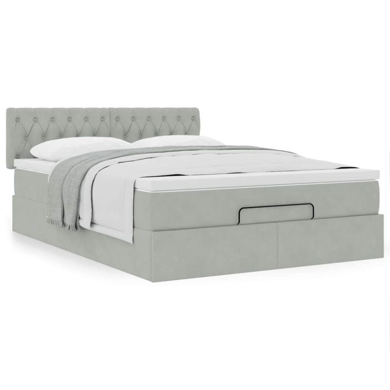 Османско легло с матрак Светло сиво 140x200cm кадифе