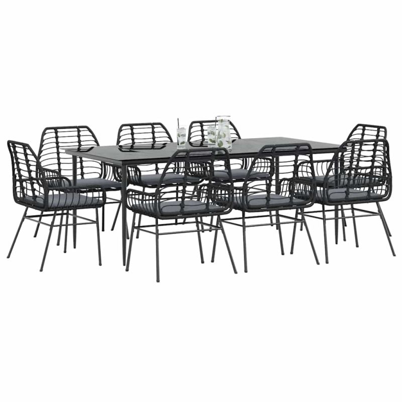 Градински комплект 9 части с възглавници черен полиратан стъкло
