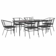 Градински комплект 7 части с възглавници черен полиратан стъкло
