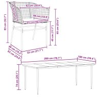 Този градински трапезен комплект е чудесен избор за вечеря на открито или просто за почивка в градината, задния двор или във вътрешния двор. Издръжлив материал: PE ратан, известен също като полиратан, е здрав синтетичен материал с малко необходима поддръжка, който прилича на естествен ратан. Той е лек, лесен за почистване и често се използва за външни мебели поради своята издръжливост и устойчивост на атмосферни влияния.Здрава и стабилна рамка: Прахово боядисаната стоманена рамка е здрава, стабилна, издръжлива и устойчива на корозия и неблагоприятни атмосферни условия, което гарантира дълготрайна експлоатация.Практична облегалка и подлакътник: Този градински стол разполага с облегалка и два подлакътника, които предлагат оптимална опора и комфорт за потребителите.Калъф, който може да се сваля и може да се пере: Тези възглавници за седалки имат подвижни калъфи за лесно пране и поддръжка.Стъклен плот: Плотът на външната маса е изработен от здраво и издръжливо закалено стъкло, което улеснява почистването с влажна кърпа и добавя нотка елегантност към вашето външно пространство. Добре е да се знае:За да сте сигурни, че вашите външни мебели ще останат красиви, ви препоръчваме да ги защитите с водоустойчиво покривало.