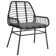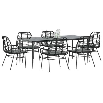 Градински комплект 7 части с възглавници черен полиратан стъкло