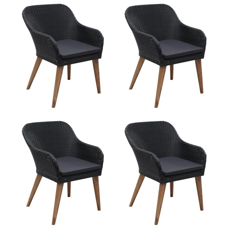 Създайте завладяваща и сплотена естетика във вашето открито пространство с този трапезен комплект за градина! Трапезната маса е изработена от масивна акациева дървесина с маслено покритие, което я прави стабилна, издръжлива и лесна за поддръжка. Тя е снабдена с прахово боядисана стоманена рамка, покрита с устойчив на атмосферни влияния РЕ ратан, което прави трапезните столове здрави и лесни за почистване. Ергономично проектираната форма и плътно подплатените възглавници доставят максимален комфорт при седене. Полиестерните калъфи на възглавниците се почистват лесно, като могат да бъдат свалени и изпрани. Важна забележка: Препоръчваме покриването на трапезния комплект по време на дъжд, сняг и скреж с цел максимално продължителна употреба.