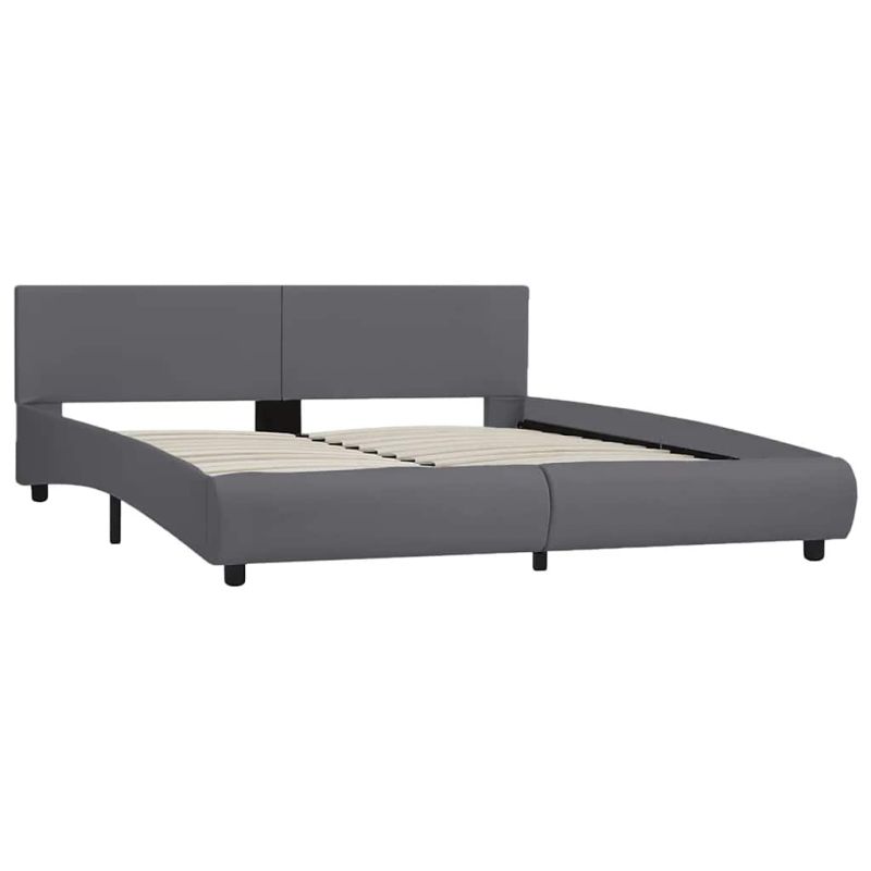 Рамка за легло с LED, сива, изкуствена кожа, 180x200 cм