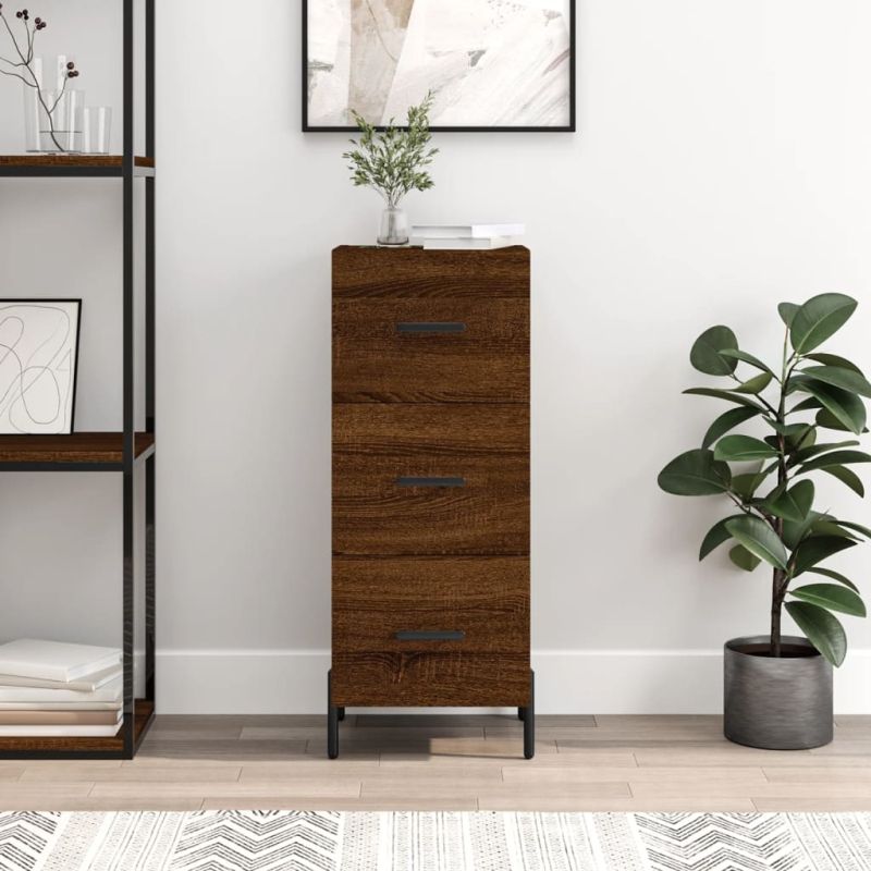 Сайдборд, кафяв дъб, 34,5x34x90 см, инженерно дърво