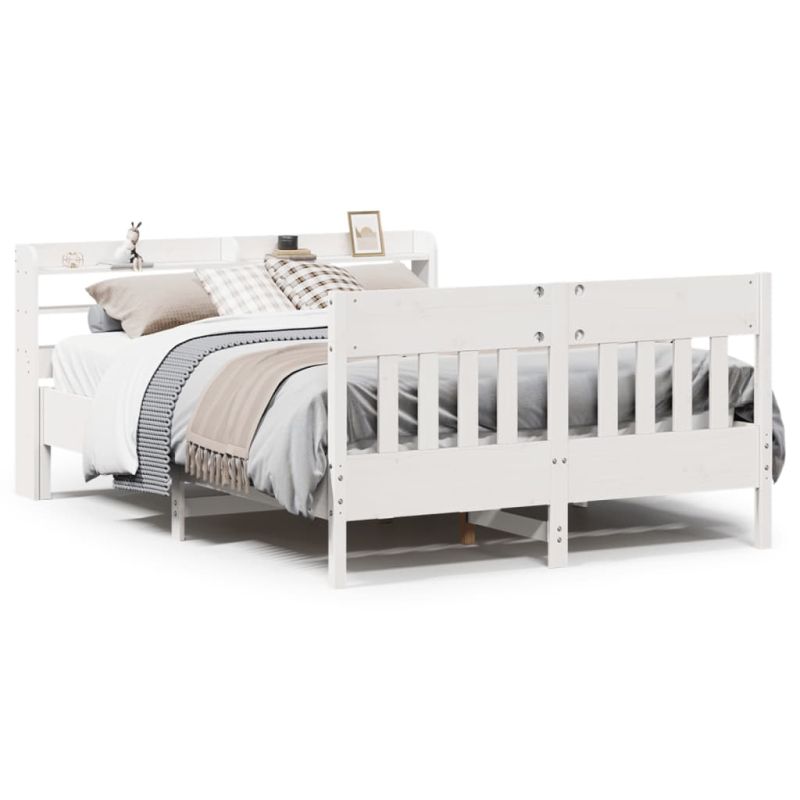 Рамка за легло без матрак, бял, 120x200 см, бор масив