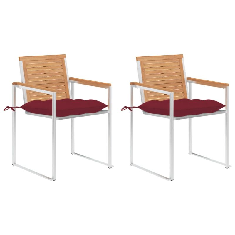 Градински столове с възглавници, 2 бр, тик масив и стомана