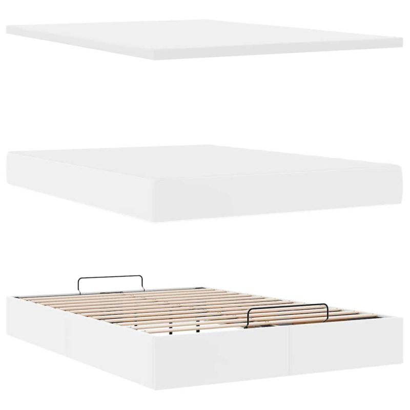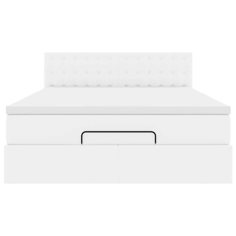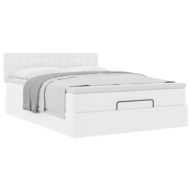 Османска легло с матрак, бяло, 140x200 см, изкуствена кожа