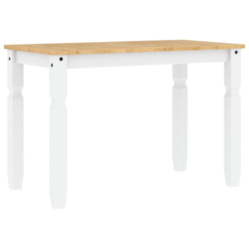 Внесете щрих на минималистичен стил и елегантен чар във вашата кухня или трапезария с тази дървена трапезна маса! Борово дърво масив: Тази маса за трапезария е изработена от борово дърво масив. Масивната борова дървесина е красив естествен материал. Боровата дървесина е с продълговати шарки, а чеповете придават на материала характерния му рустик вид.Практичен плот: Здравият плот на трапезната маса е идеален за поставяне на ястия, напитки и други декоративни елементи.Лесно почистване: Тази трапезна маса се почиства лесно с влажна кърпа.