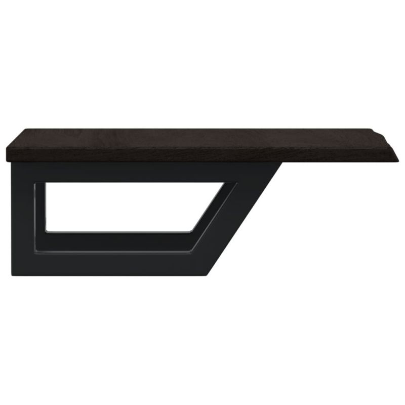 Стенният рафт за мивка се прикрепя сигурно към стената, осигурявайки елегантно и спестяващо място решение за вашата баня. Здрав и дълготраен: Този рафт за мивка е комбиниран със стоманена конструкция и плот от масивна дъбова дървесина, което го прави здрав, стабилен и дълготраен.Спестяване на място: Плаващият рафт за мивка има достатъчно място за съхранение на кремове и дребни предмети. Благодарение на трапецовидната форма можете да закачите кърпи или други неща на опората, за да спестите място.Лесен за използване: Плотът се доставя без дупки, за да позволи на мивката да се монтира отляво, отдясно или в центъра, в зависимост от изискванията на вашето помещение. Благодарение на предварително пробитите отвори в държача, той може лесно да се сглоби с плота и да се монтира на стената.Широки приложения: Благодарение на модерния си дизайн, осигурява допълнително пространство за различни видове бани. Добре е да се знае:Винтовете не са включени, можете да закупите винтовете отделно въз основа на информацията, предоставена по-долу.Прикрепване към стена: 2 бр дюбели M8 на скобаДървен плот: 2 бр M5x18 винта (T=2) или 2 бр M5x20 винта (T=2,5/4 см) на скобаКато естествен продукт, дървото може да има възли и несъвършенства, които ние запълваме с черни пълнежи, за да осигурим гладък външен вид.