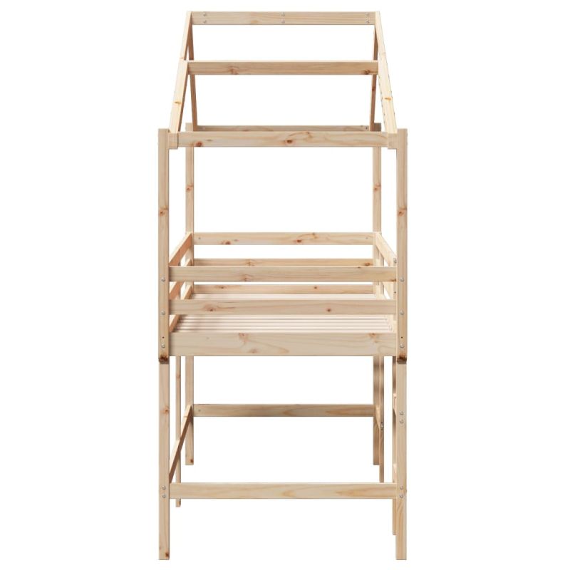 Таванско легло със стълба и покрив, 90x190 см, бор масив