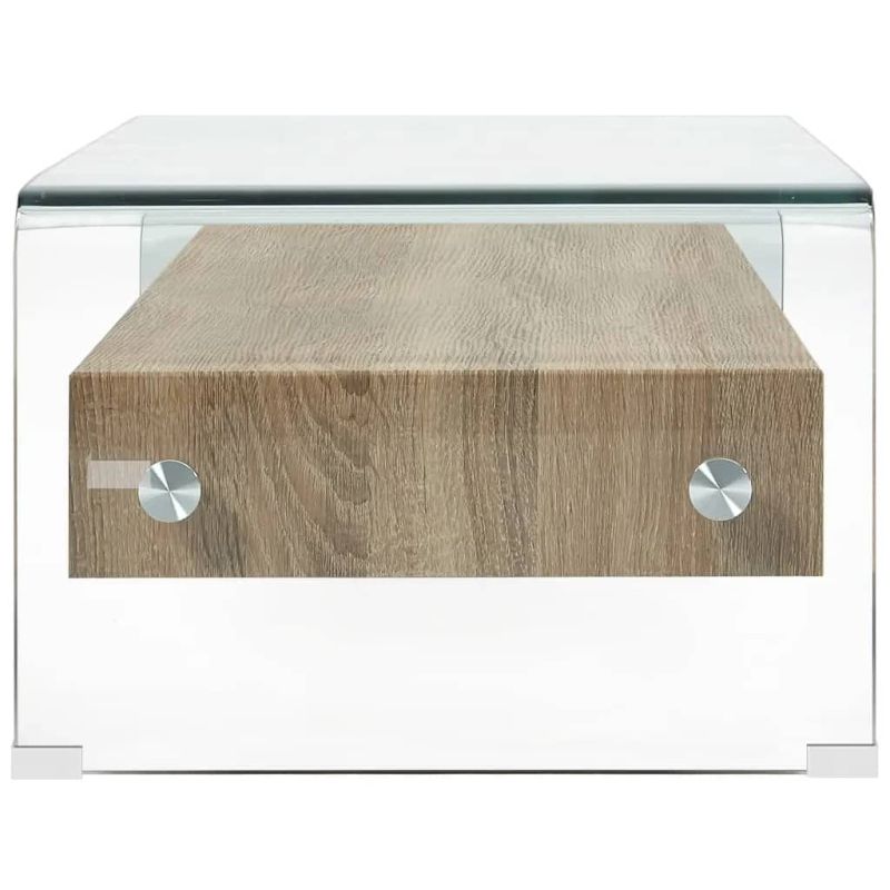 Вкарайте усещане за съвременен чар във вашия интериор с тази класическа маса за кафе в минималистичен стил! Масата за кафе е изработена от закалено защитно стъкло, което е по-безопасно и по-здраво от нормалното стъкло. Тази практична масичка за кафе ще ви помогне да поддържате жилището си подредено, благодарение на вградените МДФ рафт и чекмедже – идеални за книги, списания, както и различни други дребни предмети, които бихте искали да държите подръка. В допълнение, стабилната конструкция прави масата изключително устойчива. Отпуснете се и се насладете на почивката и забавленията със семейството и приятелите си около тази уникална маса за кафе!