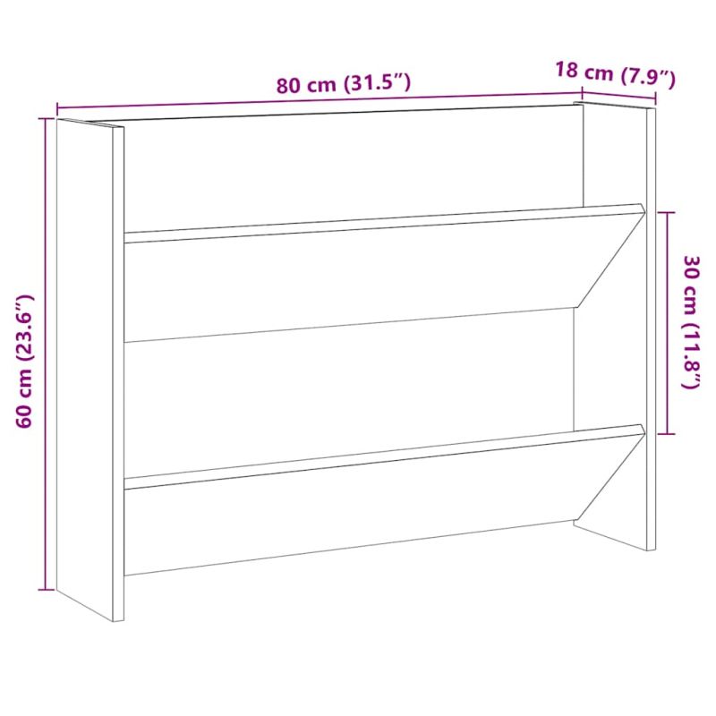 Стенен шкаф за обувки дъб артизан 80x18x60 см инженерно дърво
